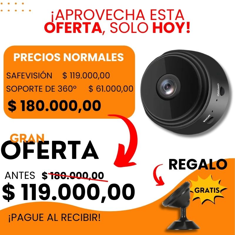 Mini Cámara de Seguridad FULL HD 1080P - SAFEVISIÓN + [ ¡REGALO EXCLUSIVO SOLO HASTA LAS 11:59 PM DE HOY] 🎁🔥