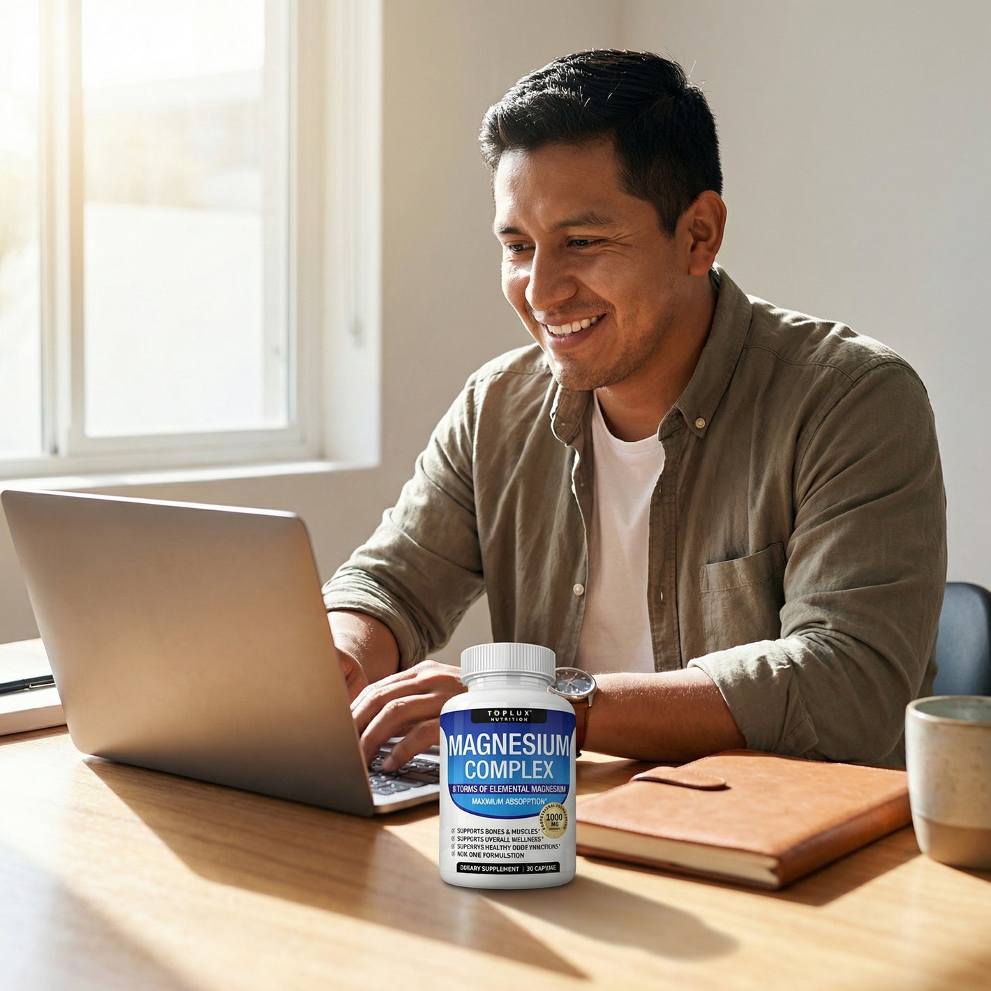 Es una fórmula completa con 8 tipos de magnesio de alta absorción, creada para ayudar al cuerpo a: